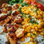 If you want a straightforward bowl that feels celebratory and travels well for leftovers, this Savory Chicken Rice Bowl with Street Corn Twist delivers. For an alternate take with similar flavors and assembly ease, check out this Street Corn Chicken Rice Bowls – The Skinnyish Dish recipe for more inspiration.