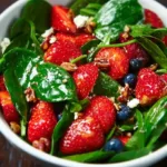 A bright, quick salad that feels like spring on a plate — that’s my go-to 30 Minute Strawberry Spinach Salad. I love making this when I want something fresh, colorful, and fast: sweet strawberries, tender baby spinach, juicy blueberries, crunchy pecans, and crumbly feta finished with a glossy balsamic glaze. It works as a light lunch, a picnic side, or a last-minute addition to a weeknight dinner. If you enjoy simple fruit-forward breakfasts or sides, you might also like this quick cottage cheese breakfast that pairs fruit and protein beautifully.