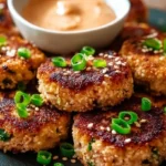 Crispy Asian Tuna Cakes infused with garlic and green onions, served with a spicy mayo dipping sauce, perfect for quick weeknight dinners or entertaining.
