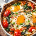Baked Feta Eggs with Tomatoes and Spinach is sure to become a favorite in your kitchen. It’s the kind of dish that feels both comforting and satisfying, with a flavor profile that’s vibrant and inviting. Give it a try, and enjoy each delightful bite!