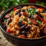 A comforting and easy one-pot meal blending black beans, rice, and smoked sausage, perfect for weeknight dinners.