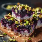 These bars hit a few sweet spots: they’re quick to mix, bake in a single pan, and travel well for picnics or lunchboxes. The lemon juice wakes up the blackberries without overwhelming them, and chopped pistachios add a savory-textured contrast that makes each bite interesting. They work for weekend brunches, casual dessert after dinner, or as a fancy snack for guests.