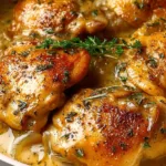A comforting recipe for creamy chicken thighs simmered in a rich sauce, perfect for weeknight dinners.