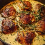 Skillet Chicken Thighs in Silky Garlic Cream Sauce