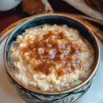 A warm and comforting bowl of oatmeal with brown sugar and cinnamon, perfect for chilly mornings or busy days.