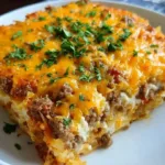 I grew up on casseroles, and this Cheesy Hamburger Hashbrown Casserole is one I reach for when I want something that feeds a crowd without fuss. Think browned beef, creamy mushroom-sour cream base, frozen hashbrowns that bake into a tender, slightly crispy blanket, and a golden cheddar topping. It’s the kind of recipe that handles busy weeknights, potlucks, and picky eaters with equal grace. If you enjoy hearty, make-ahead bakes, you might also like this cottage cheese breakfast casserole for a lighter brunch companion.