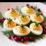 These festive deviled eggs can be served as a standalone appetizer or as part of a broader table spread. Pair them with a light salad, crusty bread, or a charcuterie board for a delightful clash of flavors and textures. If you’re feeling adventurous, consider serving them with a side of homemade cranberry sauce for a truly festive experience!