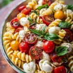 A vibrant, Italian-inspired pasta salad featuring cherry tomatoes, mozzarella, and fresh basil, perfect for summer potlucks and picnics.