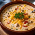 The Creamy Cowboy Soup is a hearty, comforting dish that perfectly embodies the rugged essence of cowboy cuisine. This recipe comes together in a single pot, making it ideal for busy weeknights or chilly weekends. With its rich, creamy texture and a savory blend of beef, beans, and spices, it promises to fill both your belly and soul. What makes this soup truly special is its versatility—great for a family meal or a gathering with friends, and customizable to suit various tastes.