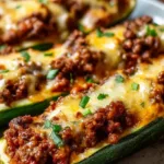 I grew up watching quick dinners get pulled together from whatever was in the fridge, and these stuffed zucchini boats are exactly the sort of simple, satisfying meal that won’t make you sweat. Ground beef seasoned with garlic and herbs is spooned into hollowed zucchini halves, topped with gooey cheese, and baked until tender. It’s a smart weeknight solution: fewer dishes, lower carbs than a pasta dish, and easy to scale for families or meal prep.