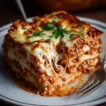 A comforting and satisfying homemade lasagna with layers of meat, cheese, and rich sauce.