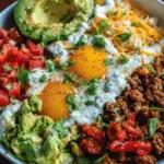 This burrito bowl gives you the flavors of a taco without the tortilla. It’s fast, high-protein, and keeps carbs low thanks to cauliflower rice and plenty of veggies. Make it for weeknights, meal prep, or when guests want a build-your-own dinner. The texture contrast—creamy avocado and sour cream against warm, seasoned meat—makes it feel indulgent while staying keto- and waistline-friendly. It’s also easy to scale and kid-friendly if you leave the jalapeño off at bowl construction time.
