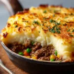 I grew up eating shepherd’s pie on cold nights — a bubbling, savory filling tucked under a blanket of creamy mashed potatoes. This version keeps that cozy spirit but strips out fuss: a straightforward meat-and-veggie base, a few pantry staples, and a golden potato top. It’s the sort of dish that feeds a family, makes great leftovers, and earns extra points for being both simple and satisfying.
