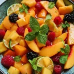A refreshing peach fruit salad with honey lime dressing is perfect for summer picnics and gatherings, combining juicy peaches and vibrant berries.