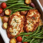 A delightful balance of classic comfort and nutritious ingredients, this Healthy Chicken Parmesan with Vegetables features crispy chicken, cheesy goodness, and vibrant roasted veggies, perfect for family dinners.