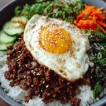 Serve this bowl hot over plain steamed rice or short-grain sushi rice for a slightly stickier bite. Top with a soft‑fried egg for luxury and extra richness. For contrast, add a scoop of kimchi, quick-pickled cucumbers, or shredded carrots. Toasted sesame seeds and a drizzle of gochujang mixed with a little warm water make for a spicy-sweet finishing touch. For a lighter plate, serve the beef in lettuce wraps with julienned veggies.