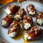 - Drizzle maple syrup over each stuffed date, allowing it to seep in.