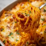 A hearty casserole-style spaghetti dish packed with savory sausage, creamy cheese, and rich marinara sauce that’s perfect for gatherings and family dinners.