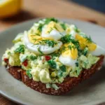 A creamy, tangy twist on classic egg salad where ripe avocado replaces most of the mayo, infused with lemon and cumin for a Mediterranean flair.