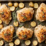 This one-pan meal features crispy garlic-herb chicken thighs paired with tender roasted potatoes, making it a flavorful and easy dish perfect for busy weeknights.
