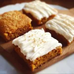 Soft, spiced pumpkin bars topped with velvety cream cheese frosting—perfect for autumn gatherings.
