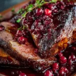 A tender and juicy roast beef dish enhanced by tart cranberry sauce and balsamic vinegar, perfect for any gathering.