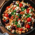 A quick, flavorful one-pan Mediterranean dish made with ground chicken, Kalamata olives, feta, and a splash of lemon, perfect for busy weeknights.