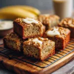 Tender banana bread bars made with ripe bananas, perfect for snacks, breakfast, or dessert.