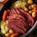 A hands-off recipe for tender corned beef brisket surrounded by vegetables, perfect for celebrations or cozy dinners.
