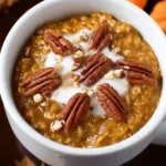 A cozy breakfast that combines the flavors of pumpkin pie with hearty oats, perfect for busy mornings.